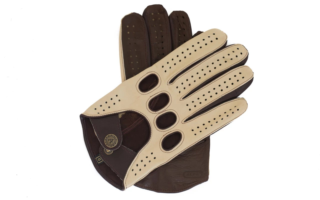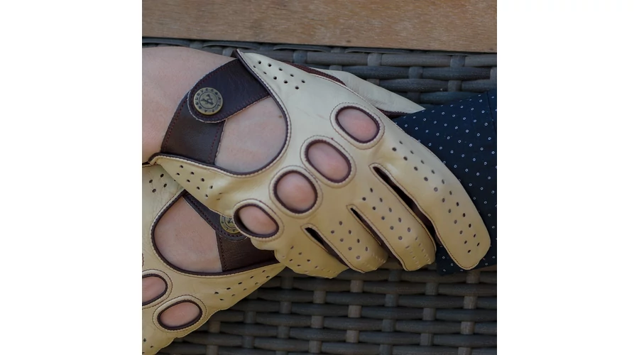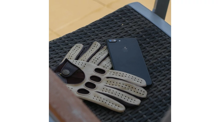 Férfi, juhnappa bőr, autós kesztyű BÉZS-BARNA
